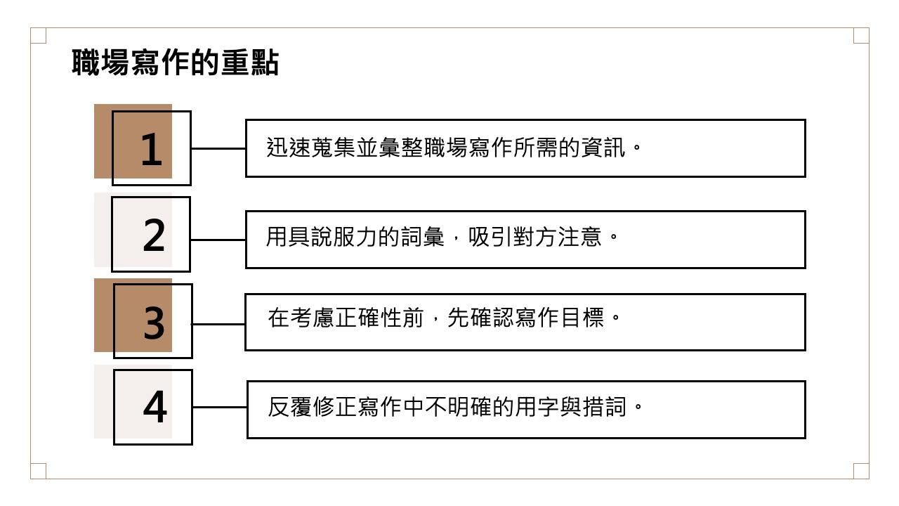 比較可惜的是這些能力雖然很重要,但無論是在學校或職場中,卻沒有人可以有系統地教你學會這些技巧,往往只能自己摸索。嗯,別小看職場寫作的重要性,因為這很有可能就是影響你績效表現的關鍵能力!